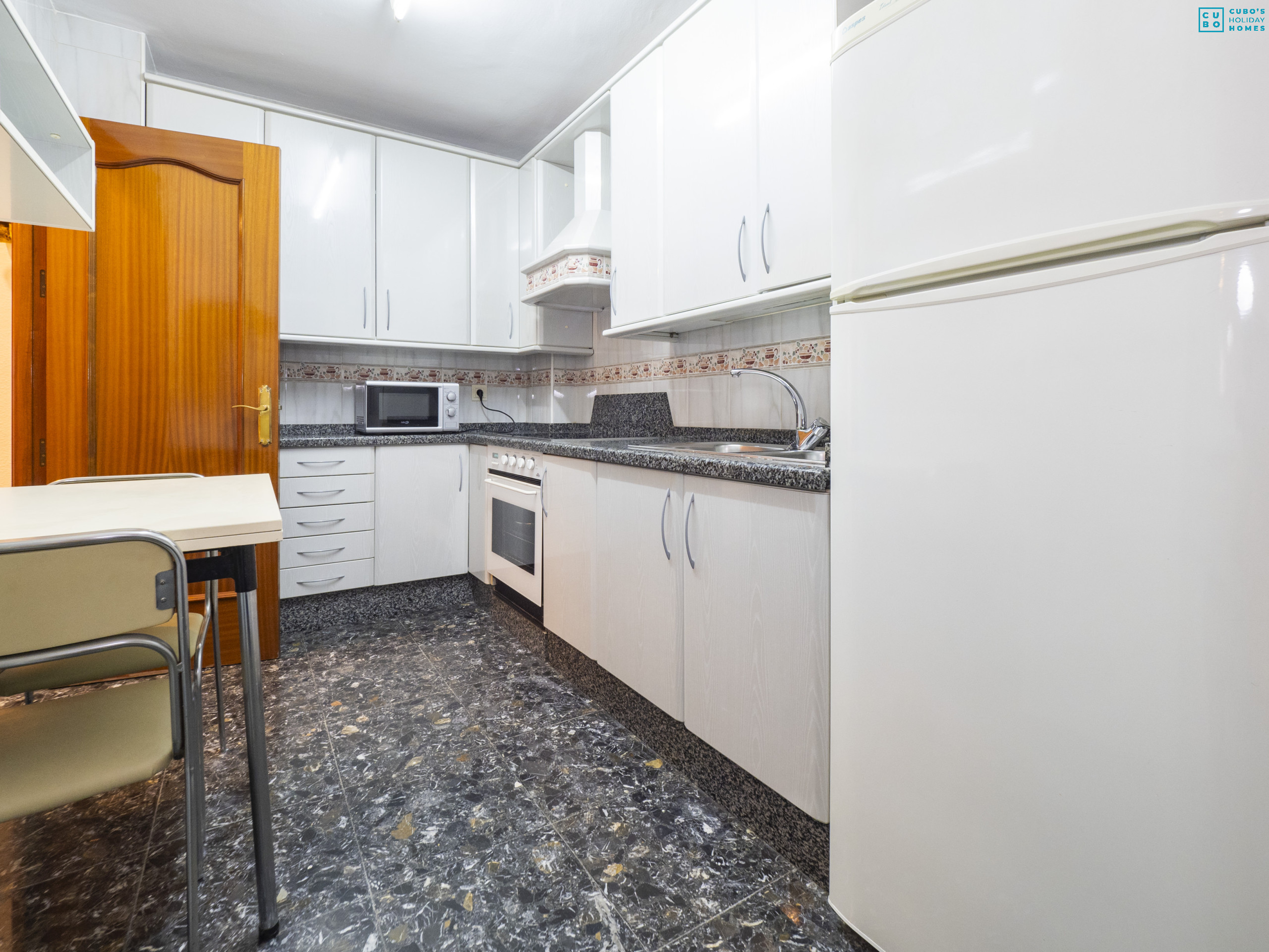 El acceso al edificio es comunitario mediante ficha, con opción de ascensor o escaleras, y cuenta con un pasillo recibidor con armario empotrado para organizar tu equipaje fácilmente. La zona de salón comedor es luminosa y cómoda, equipada con aire acondicionado, sofá amplio y televisión (no Smart TV, por lo que recomendamos traer cable HDMI o Chromecast para conexión a internet). La cocina, tipo americana, está totalmente equipada con electrodomésticos modernos como vitrocerámica, nevera combi, horno, microondas, lavadora, lavavajillas, cafetera, tostadora y más, para que prepares tus comidas sin problema. 🍳🍽️