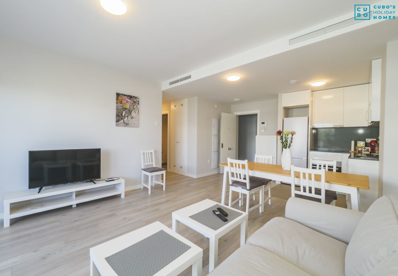 El salón dispone de Smart TV y conexión a internet wifi para que puedas entretenerte con tus series o películas favoritas después de un día de playa o turismo. Además, el apartamento cuenta con aire acondicionado para tu máximo confort. 📺❄️