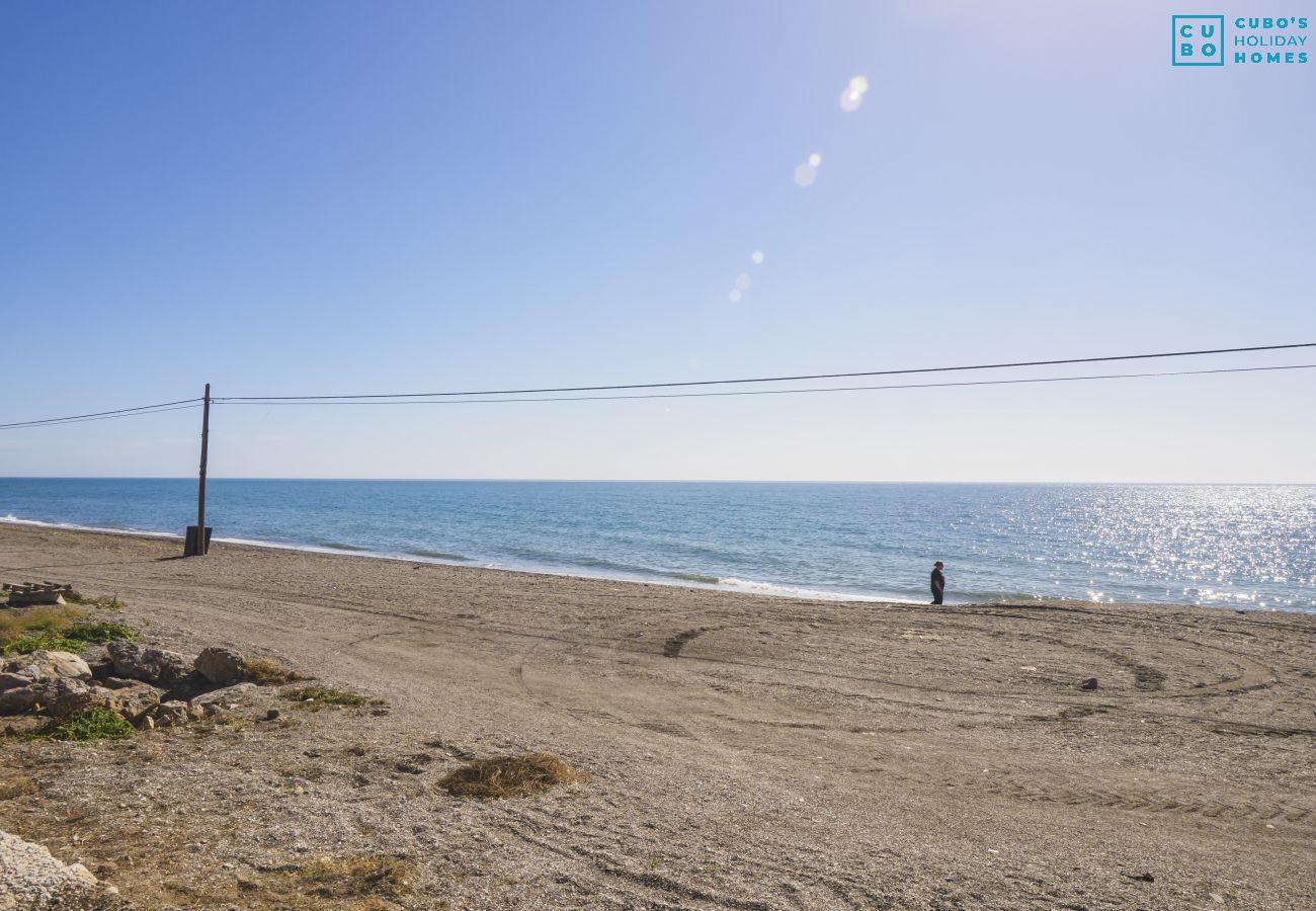 La ubicación es estratégica: a solo 18 m de la Playa Peñón del Cuervo (roca), 500 m de la Playa de Valle Niza (arena), y cerca de supermercados, restaurantes y paradas de autobús. Otros destinos destacados cercanos incluyen Torre del Mar (7 km), parque acuático Aquavelis (8 km), campo de golf Baviera Golf (12 km), y la ciudad de Málaga a 31 km, con conexiones a tren y aeropuerto. Además, la zona es ideal para familias con niños y se encuentra dentro de una urbanización segura. 🌟🛍️🎢