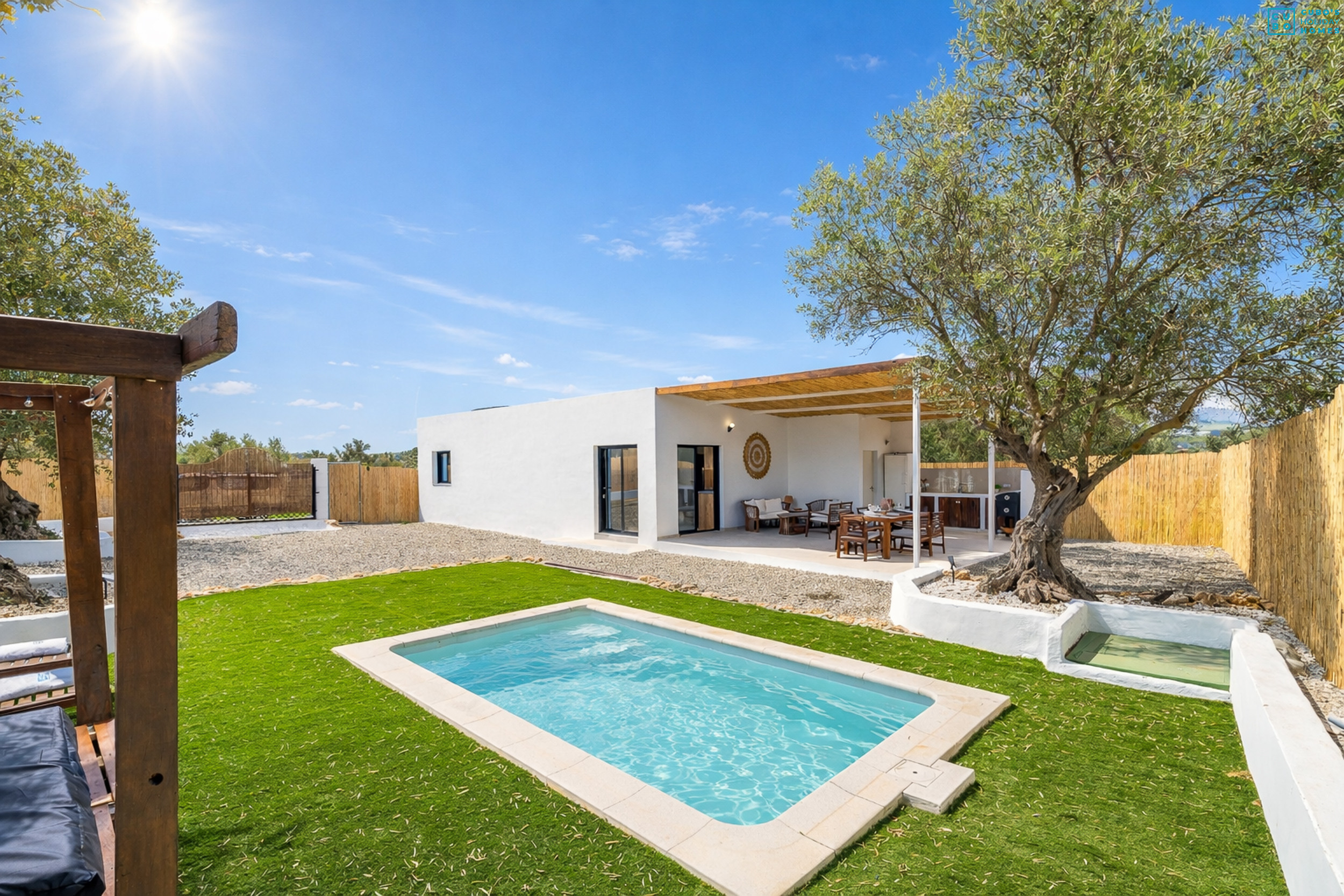 Este acogedor alojamiento de 65 m² cuenta con 2 dormitorios y capacidad para 6 personas, ideal para familias que desean combinar relax y aventura. Ubicada en una zona rural y segura para los niños, la villa ofrece amplios exteriores con piscina privada (sin vallado), hamacas, sombrillas y una orientación perfecta para disfrutar del sol todo el día. 🌴☀️ La piscina, situada en alto, requiere supervisión para los más pequeños, garantizando momentos tranquilos y seguros para todos.