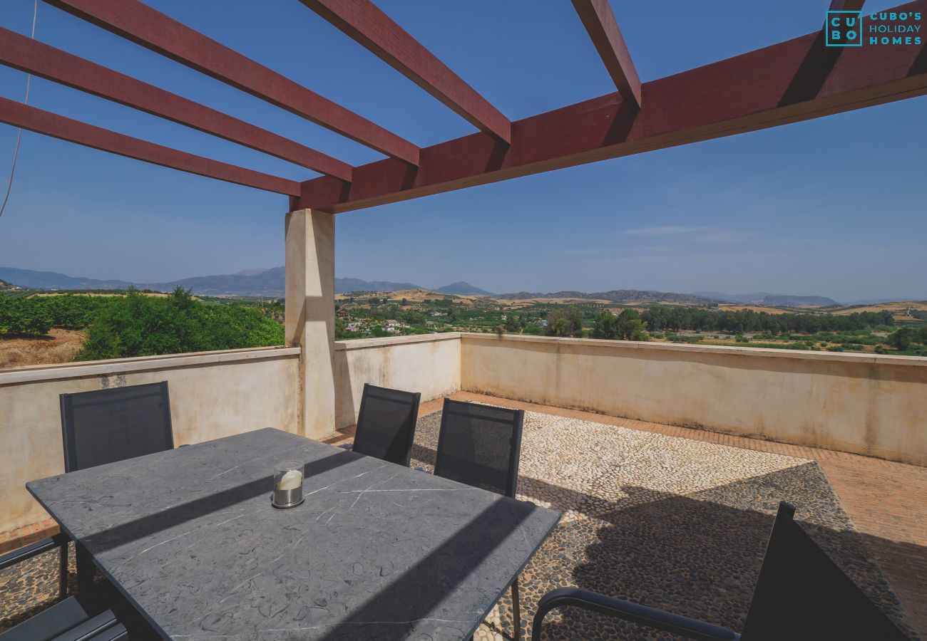 La villa se distribuye en dos plantas, con vistas despejadas al Valle del Guadalhorce y una excelente orientación solar. Su terraza con mobiliario de jardín permite disfrutar del aire libre y de las vistas. La cocina es independiente y está completamente equipada para preparar tus comidas con comodidad. El salón comedor es amplio y cuenta con smart TV para relajarte tras un día de exploración o descanso.