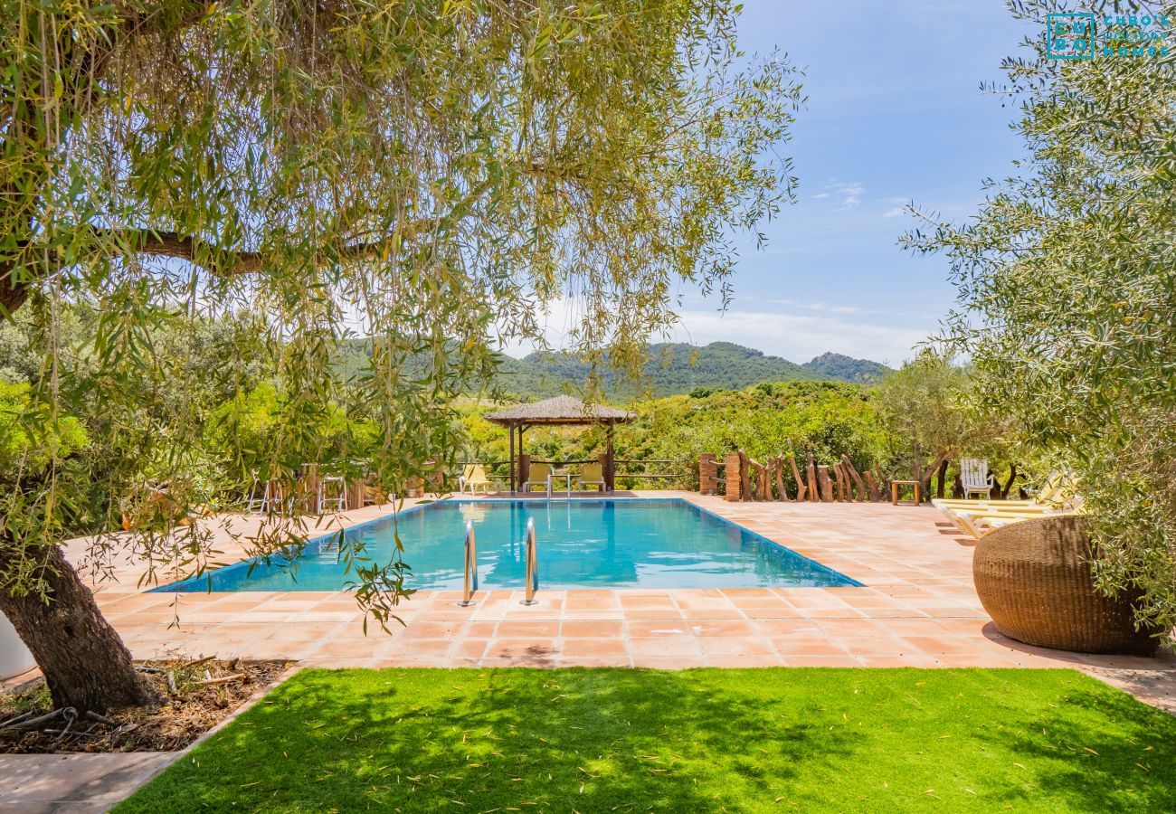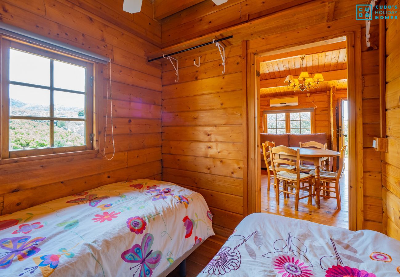 Wooden rural cabin in Coín with shared private pool, surrounded by nature and spectacular mountain views, ideal for a peaceful holiday on the Costa del Sol 🌞🏞️.