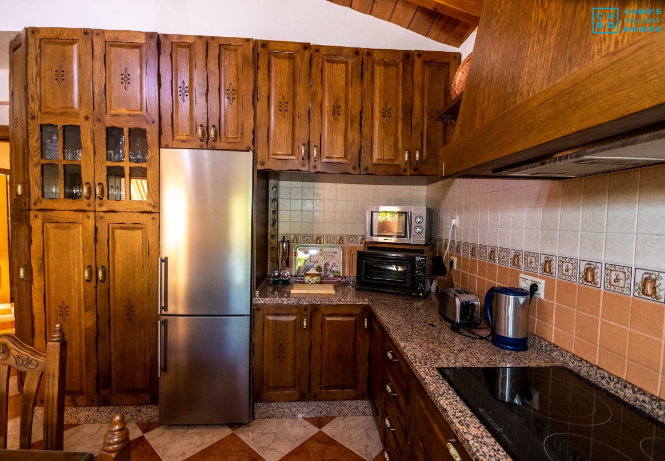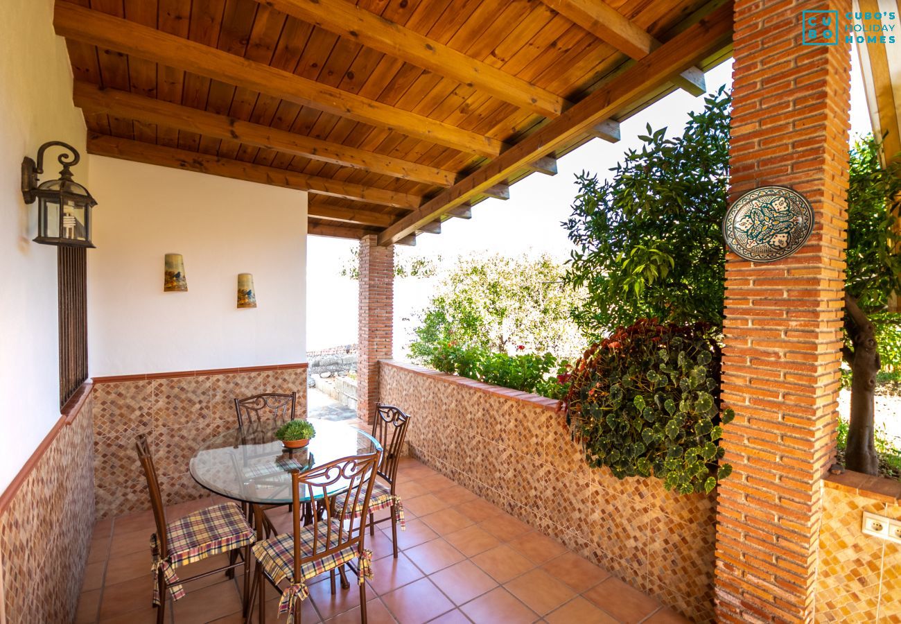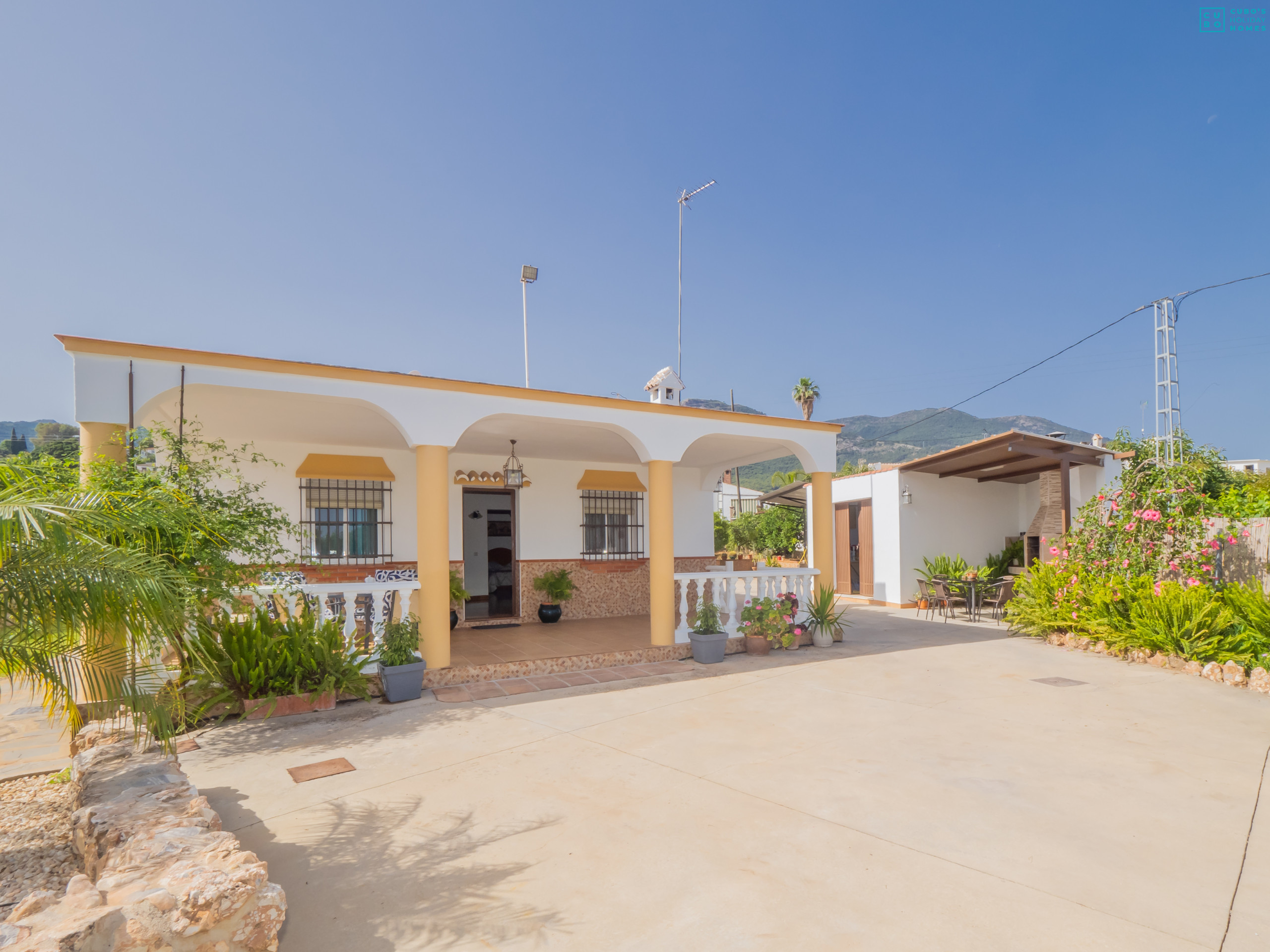 À l'extérieur, vous trouverez une zone de barbecue avec une deuxième cuisine complète, des tables, des chaises, des transats et des hamacs pour vous détendre en admirant les belles vues sur les montagnes et le jardin rempli d'arbres fruitiers comme des orangers et des néfliers, que vous pourrez déguster frais pendant votre séjour.