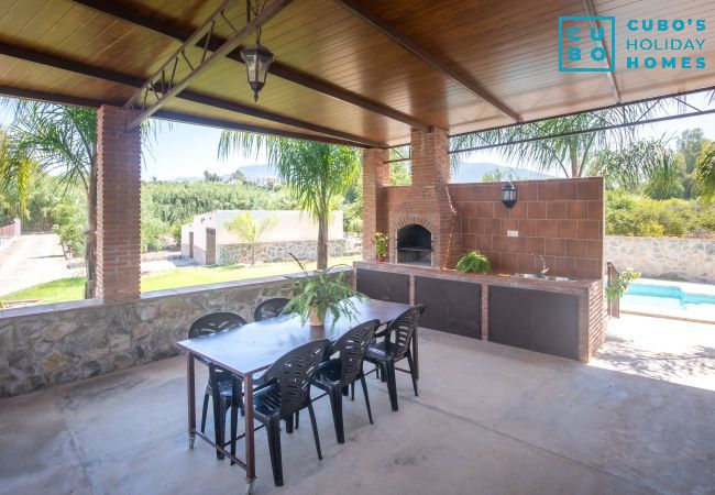 À l'extérieur, vous trouverez une zone de barbecue avec une deuxième cuisine complète, des tables, des chaises, des transats et des hamacs pour vous détendre en admirant les belles vues sur les montagnes et le jardin rempli d'arbres fruitiers comme des orangers et des néfliers, que vous pourrez déguster frais pendant votre séjour.