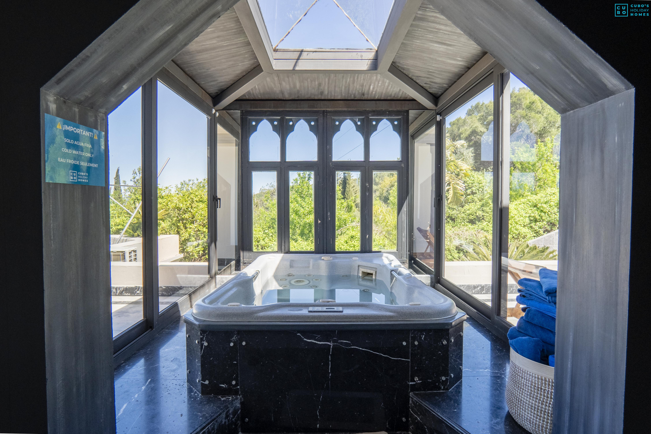 - Chambre exclusive avec jacuzzi vitré à eau froide et terrasse privée. Dispose d'une salle de bain attenante avec douche.