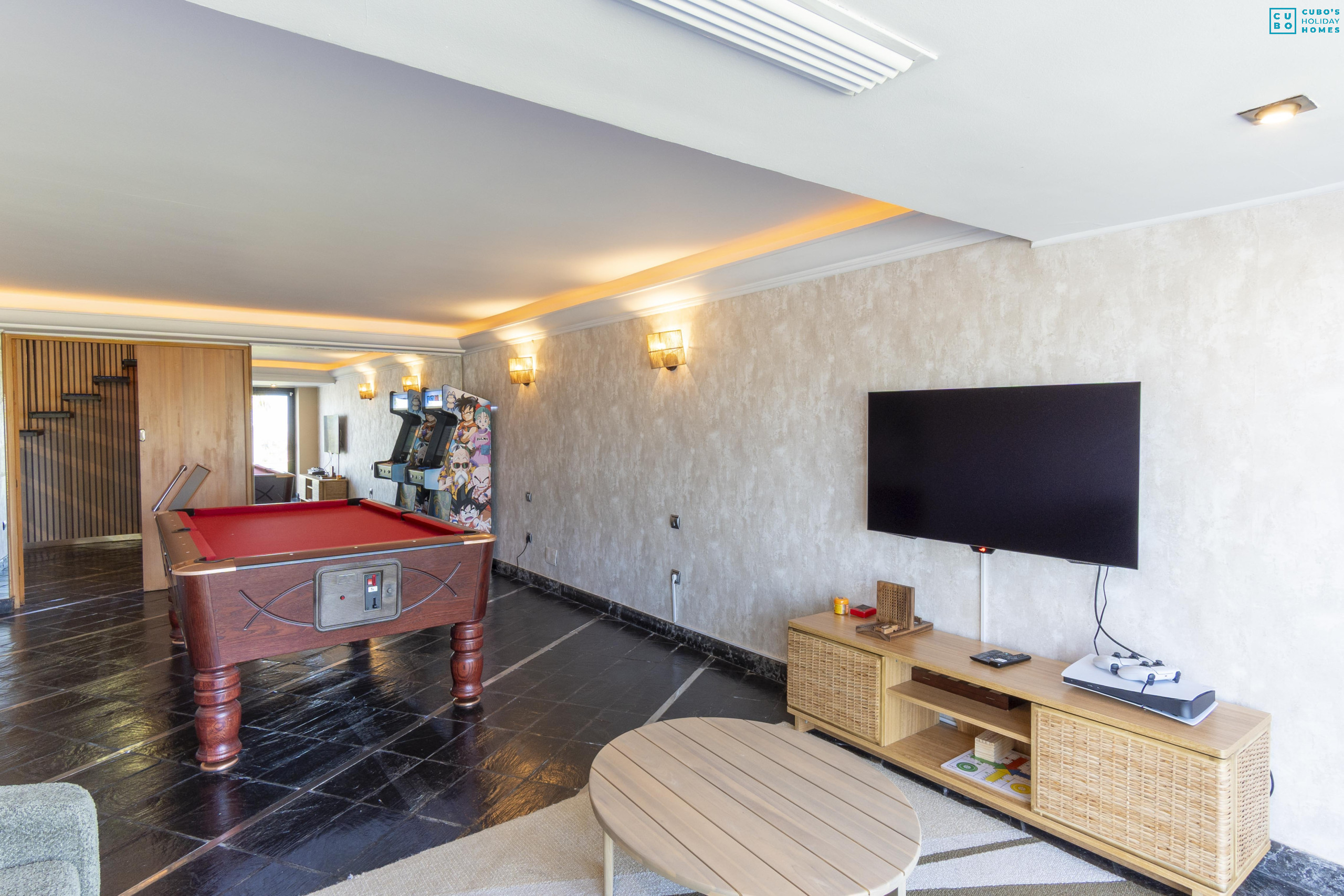- Salle de jeux équipée d'un billard et d'une borne d'arcade de jeux vidéo avec environ 1 500 jeux, ainsi qu'un canapé-lit pour deux places supplémentaires.